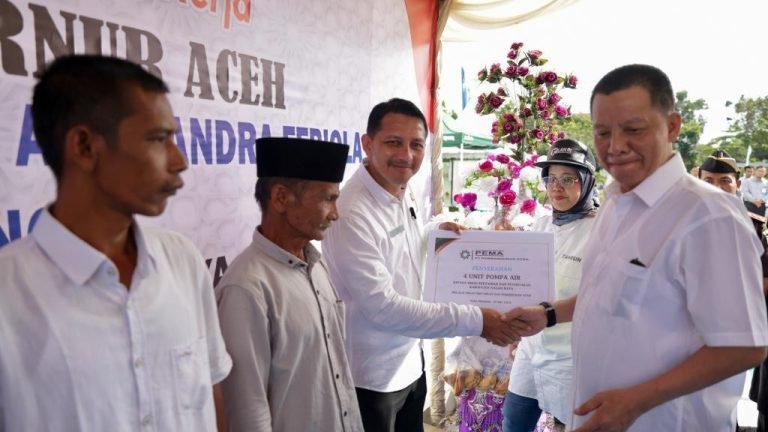 “Ya, pompa air submersible ini bertujuan untuk membantu petani ya, sehingga memudahkan petani meningkatkan  produksi” Disampaikan  Bapak Ali Mulyagusdin,  direktur utama PT Pembangunan Aceh, Serah terima yang dilakukan di Halaman Masjid Giok Agung Baitul A’la Nagan Raya, yang dihadiri oleh Pj gubernur Aceh, Achmad Marzuki, beserta SKPA terkait yang turut hadir pada perjalanan kunjungan kerja Gubernur Aceh 7-10 Mei 2023.[/vc_column_text][/vc_column][/vc_row]